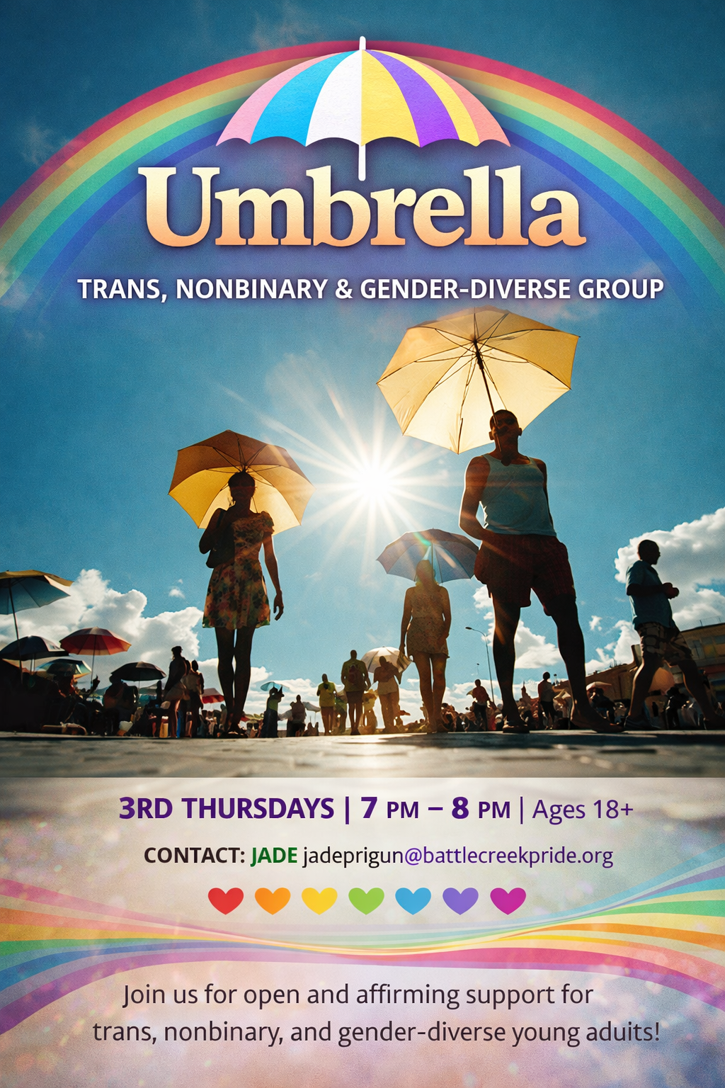 Follow us on Facebook and visit https://www.battlecreekpride.org for event updates, details, and what’s coming next.